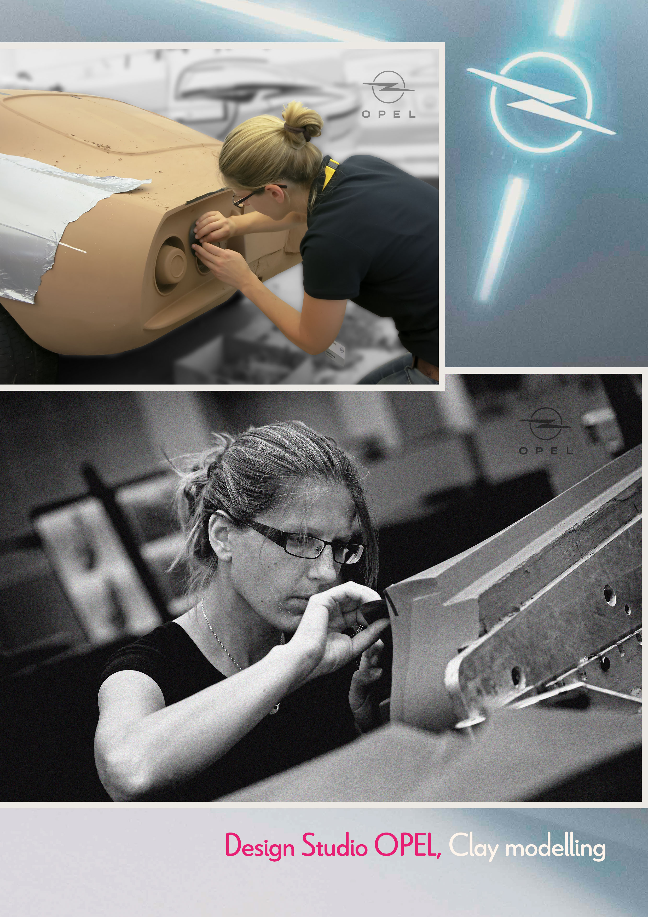 In der Automobilindustrie wird Styling Clay verwendet, welches man vor dem Modellieren auf 50 °C erwärmen muss. Das Material besitzt eine sehr gute Hafteigeneinschaft und wird bei normaler Raumtemperatur formstabil. So abgekühlt lässt sich das Clay Modell auch maschinell mit einer CNC-Fräse bearbeiten. Per Hand benutzt man Clay-Werkzeuge wie unterschiedliche Blechformen, Fugeneisen oder Reiben. Durch seinen Sienna Braunton, läßt sich die Form der dreidimensionalen Fahrzeugmodelle für den Betrachter besser beurteilen. Solche Clay Modelle im Automobildesign werden in der Regel 1:1 oder als Scale Modelle in 1:4 modelliert. Styling Clay ist eine Modelliermasse auf Wachsbasis und wird nicht gebrannt.